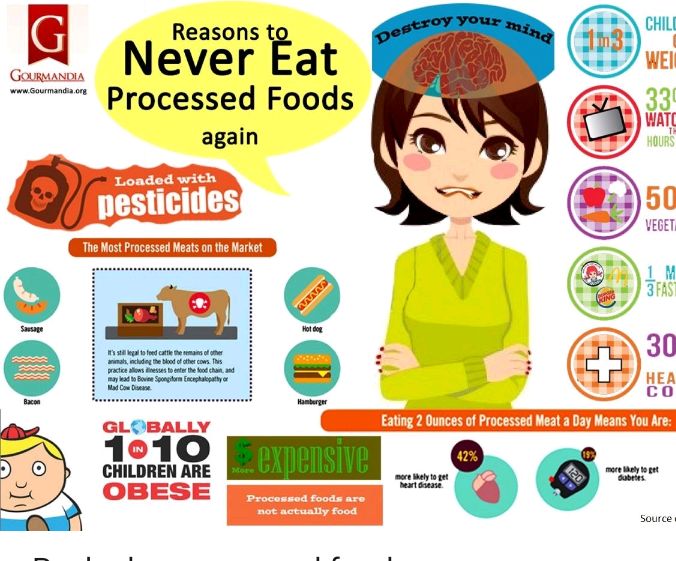 -7. Negative Impact on Mental Health Several studies show that high consumption of processed foods may increase the risk of:DepressionAnxietyMood swings This is because processed foods lack nutrients that support brain health, such as omega-3 fats, vitamins, and antioxidants